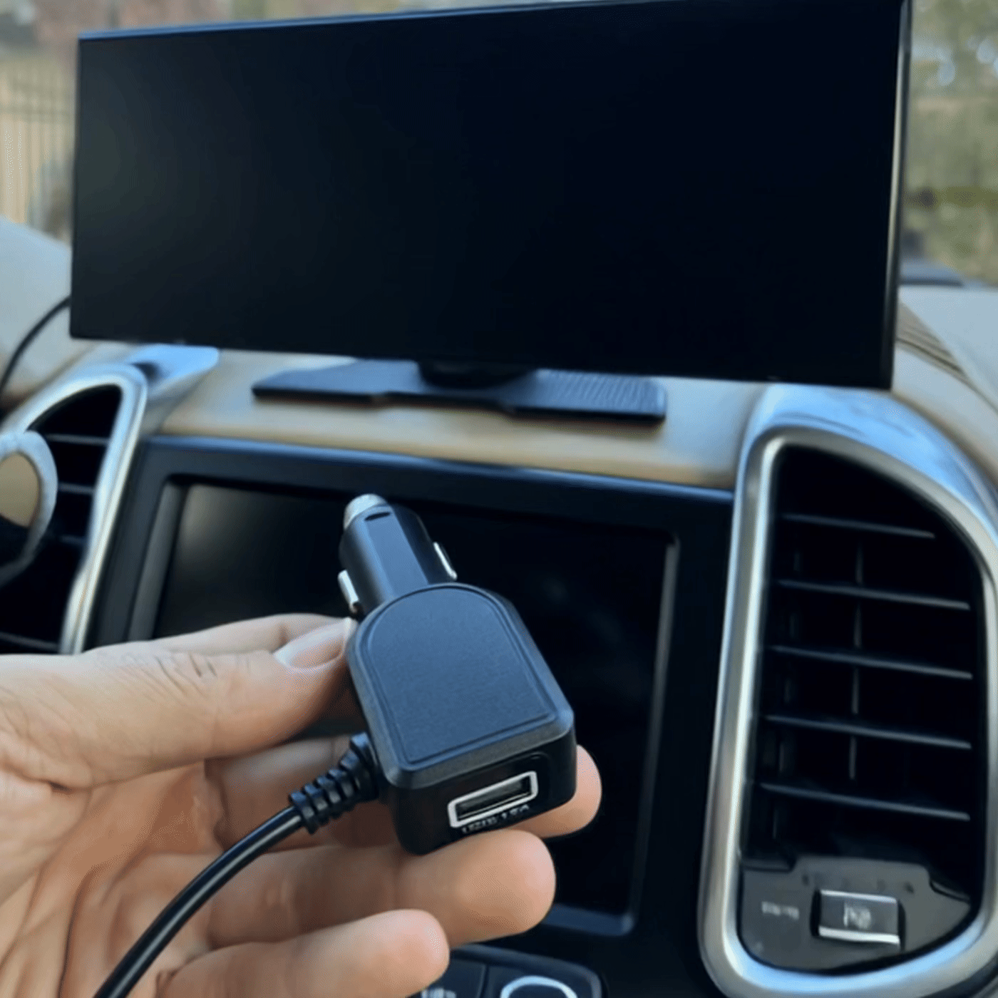 Branchez l'adaptateur sur la prise allume-cigare 12 V. Si vous le souhaitez, vous pouvez également utiliser le port USB/Type C de la voiture, mais veuillez noter que le câble nécessaire n'est pas fourni.